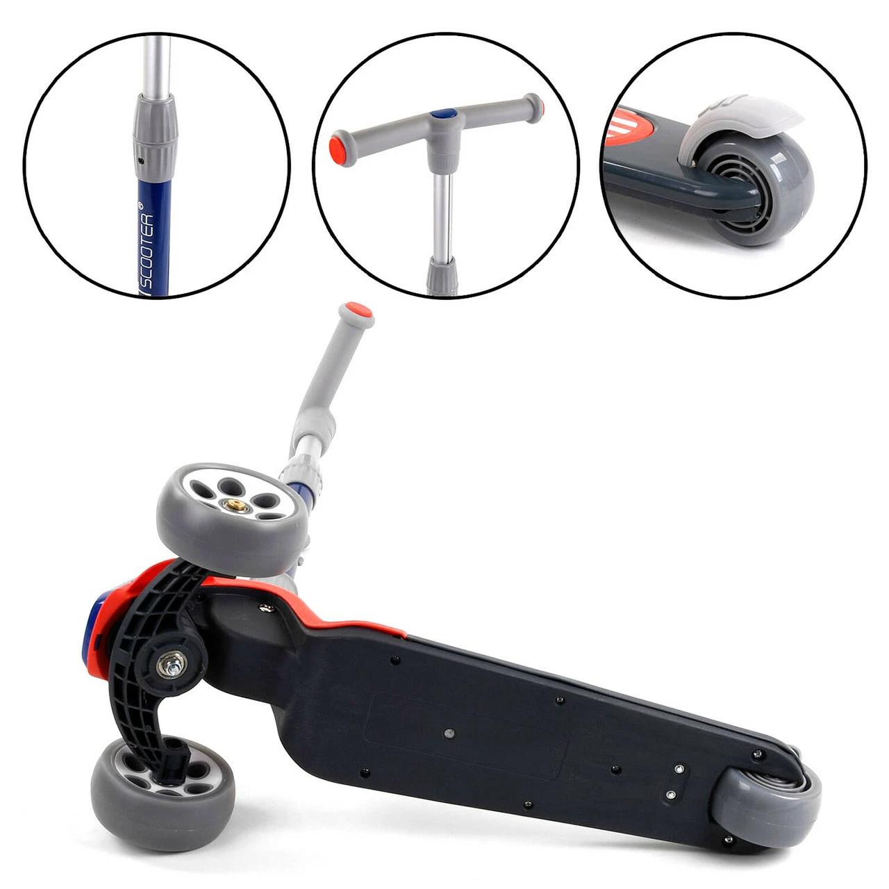 самоката состоит из трех колес два передних и заднее колесо. За