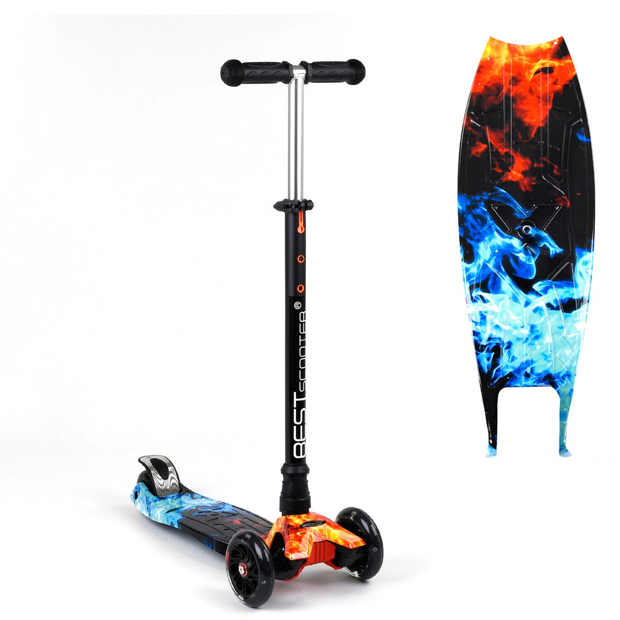 катания. Пластмассовая дека самоката выполнена из прочного