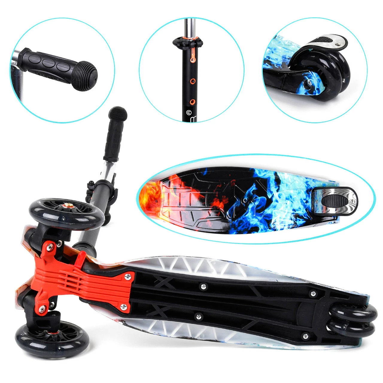 - Диаметр колес самоката: передние 120 мм; задние 80 мм
