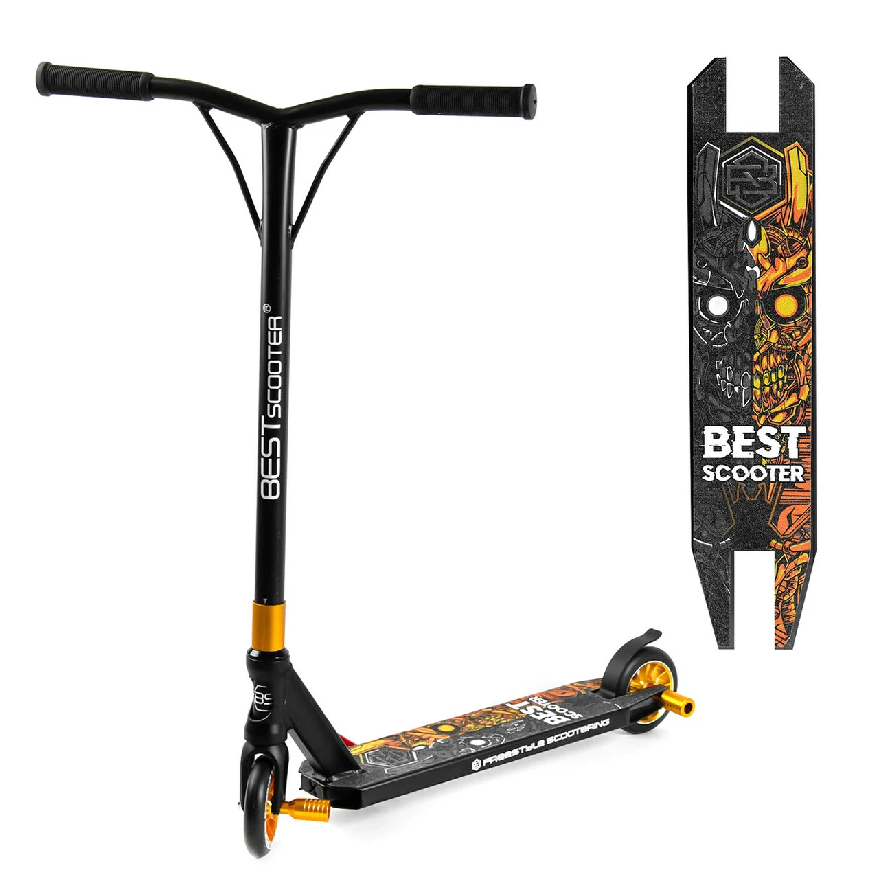 Самокат трюковый Scooter Черно-золотой 6900066350436