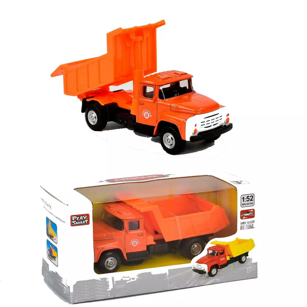 - кузов самосвала поднимается, откидывается задний борт. Металлический корпус, наличие инерционного механизма и подвижные элементы делают игрушку невероятно увлекательной и функциональной в процессе игры.