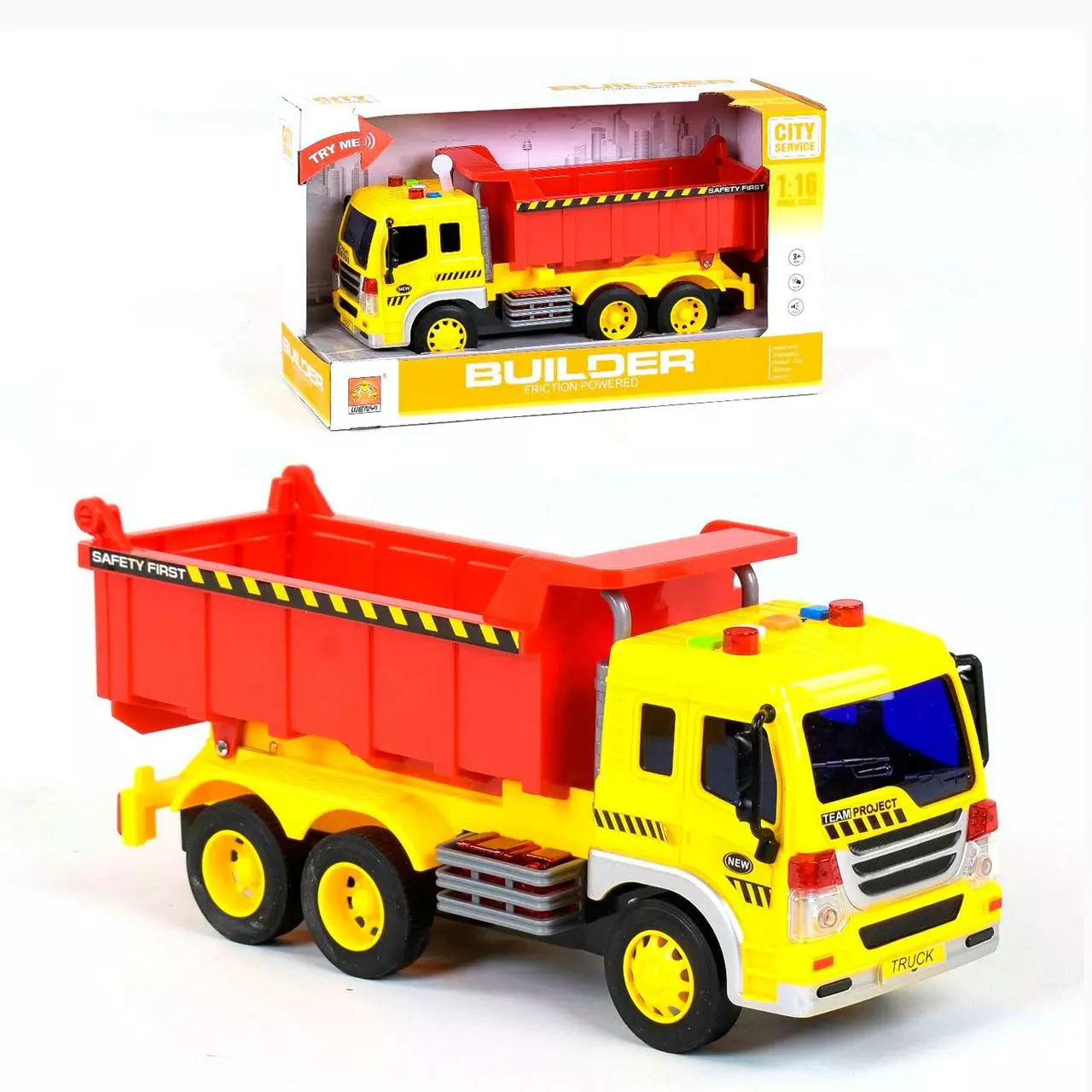 Самосвал с инерционным механизмом Kimi со световым и звуковым эффектом Желто-красный 6974060113212