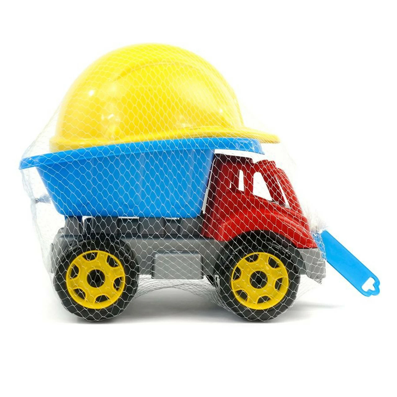самосвал с вместительным кузовом и желтую строительную каску.