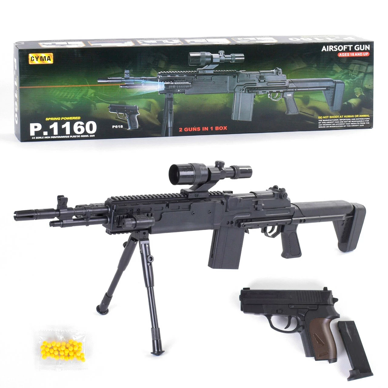 сошки; В комплект входит пластиковый пистолет Kimi. Винтовка предназначена для стрельбы по мишеням. Соблюдайте технику безопасности, не стреляйте в людей и животных.