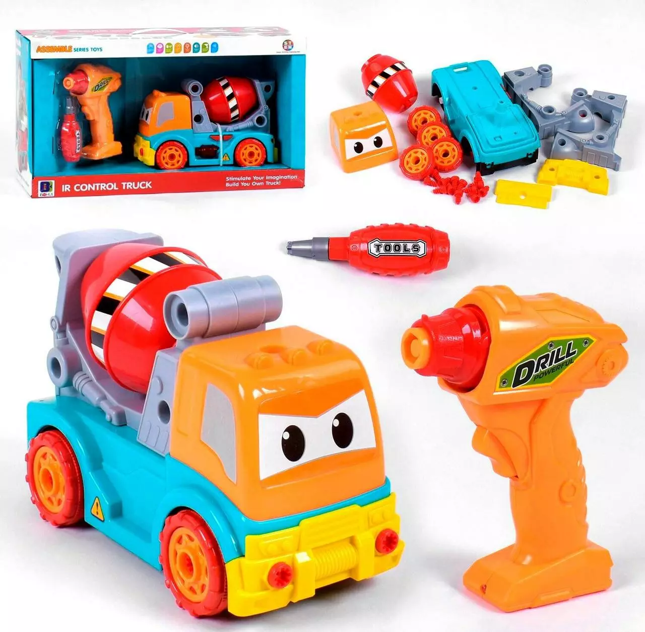 Спецтехника Бетономешалка на радиоуправлении Конструктор Шуруповерт Звук Подсветка Разноцветная 6974210080029