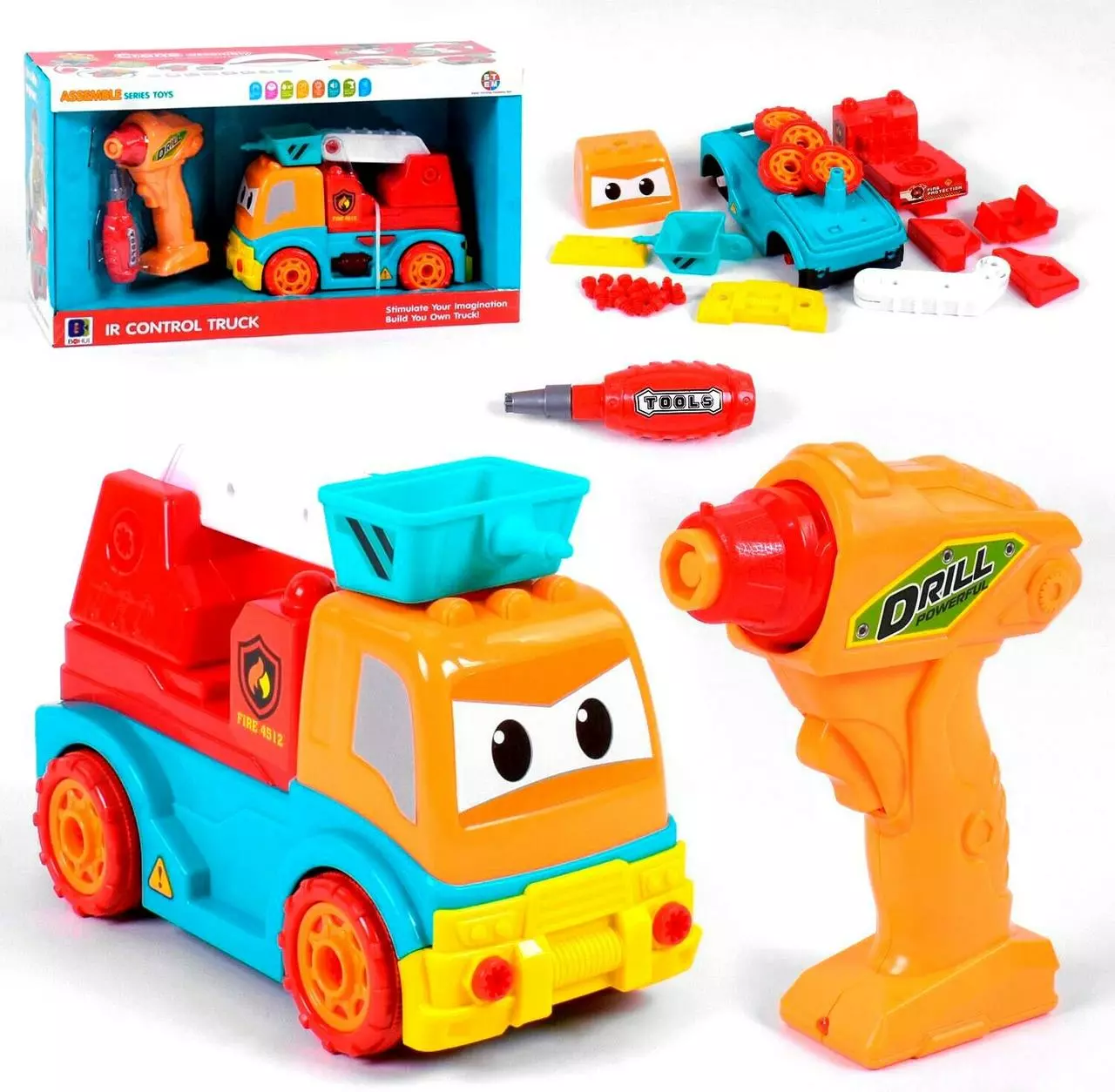 Спецтехника Пожарная Машина на радиоуправлении Конструктор Шуруповерт Звук Подсветка Разноцветная