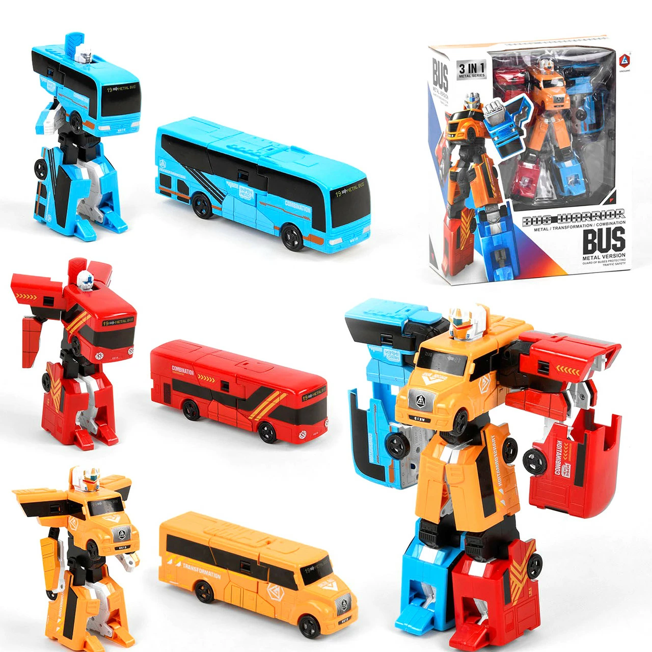 - оранжевый автобус - 10 шагов. Также корпус транспорта украшен цветными вставками, цифрами и наклейками с надписями. Роботы-трансформеры выполнены из первичного пластика и имеют в своей конструкции подвижные детали: руки и голова. Трансформер поможет ребенку развивать чувство долга и справедливости, а также поможет проявить его лидерские качества. Размер автобуса - 16 5 5.5 см. Высота собранного робота - 25 см.