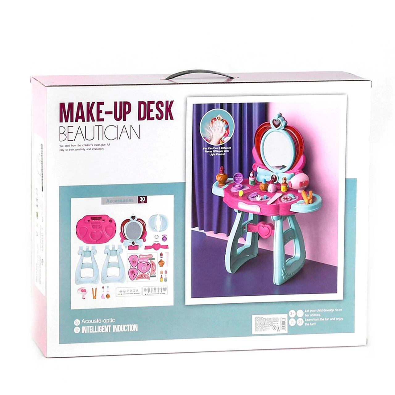 лист наклеек. Звуковые и световые эффекты зеркала работают от 3х батареек типа АА - в комплект не входят. Размер собранного косметического столика - 57 х 29 х 76 см.