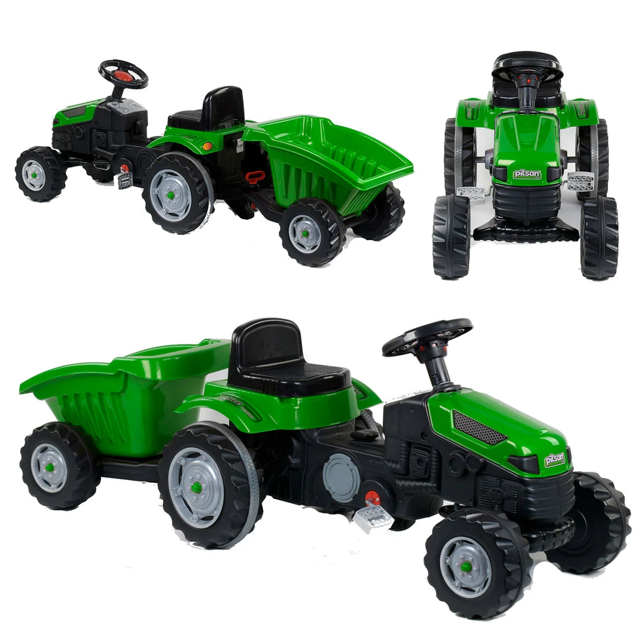 Веломобиль-трактор с прицепом Alpha со световым эффектом Черно-зеленый 2000000030951